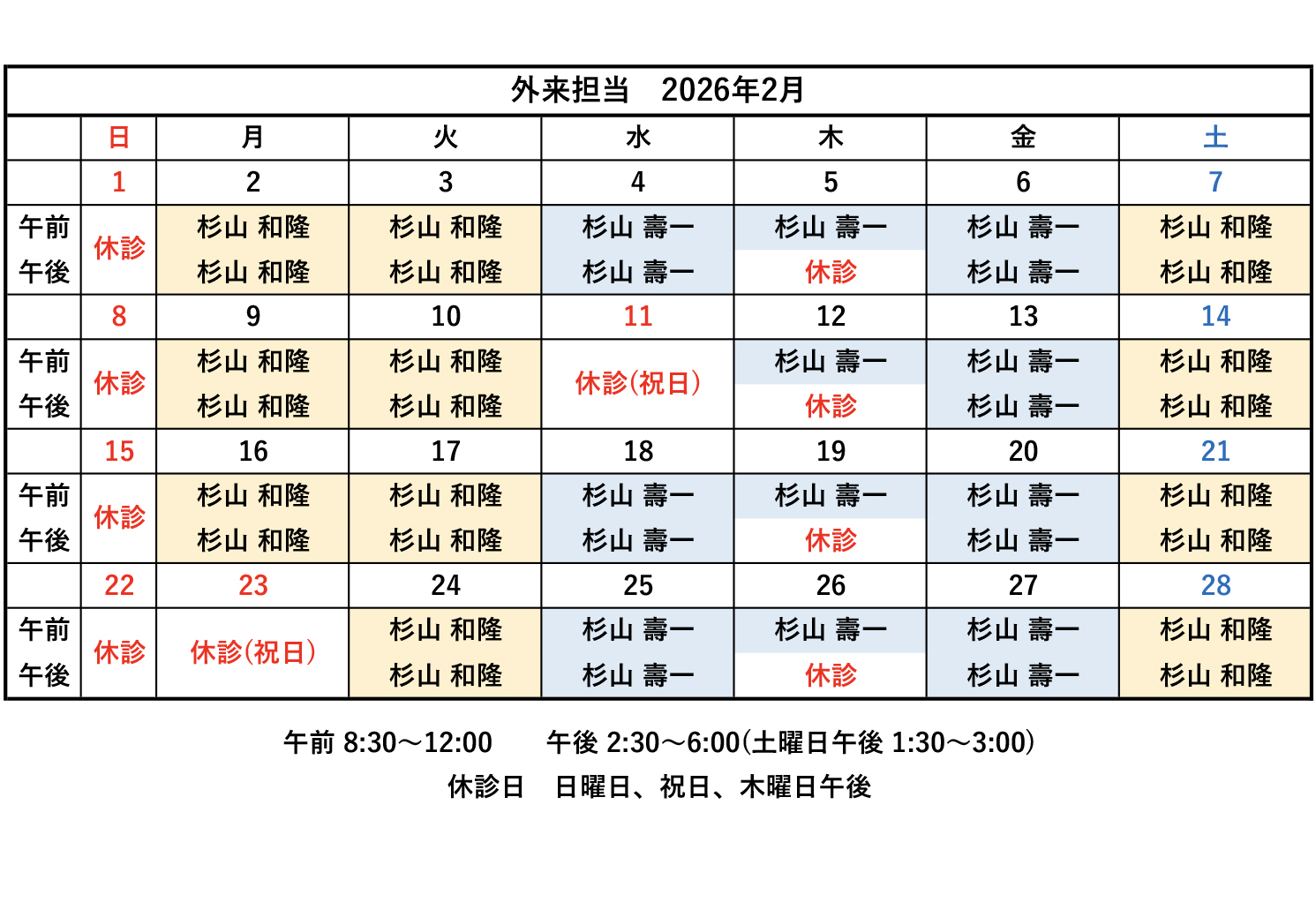 泌尿器科外来担当医スケジュールになります。スケジュール変更の場合は、こちらのカレンダーにてお知らせします。