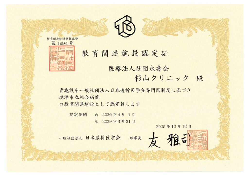 令和8年4月1日より、当院は焼津市立総合病院の教育関連施設として認定されました。